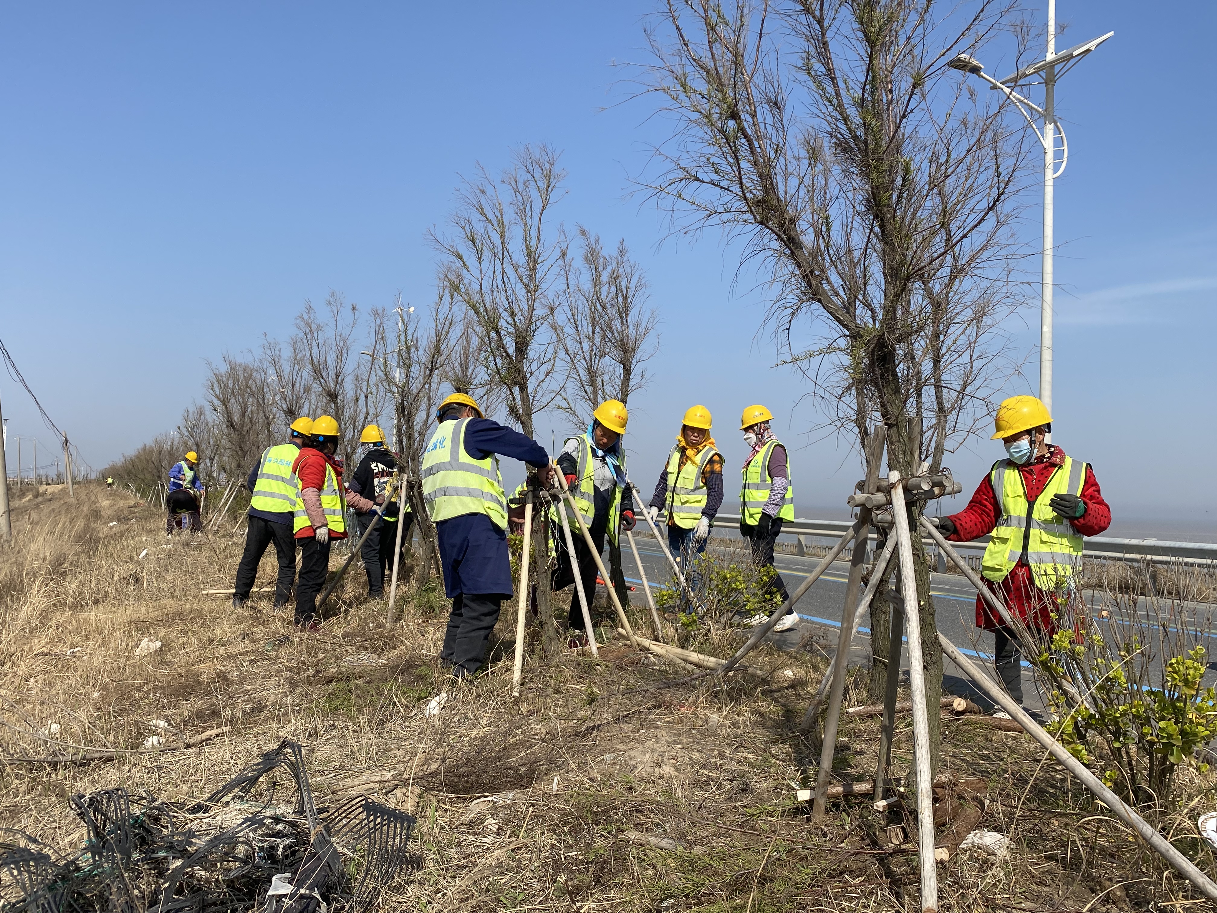 春回大地,萬物復(fù)蘇,隨著春季氣溫回暖,綠化樹木由休眠期轉(zhuǎn)入生長期,海堤路邊的鹽松經(jīng)過潮汛強(qiáng)風(fēng)的洗禮后,部分樹苗出現(xiàn)傾斜或倒伏情況。近日,黨員干部發(fā)揮帶頭作用,新灘鹽場(chǎng)共120余名干部職工開展苗木扶正專項(xiàng)行動(dòng)。2023-04-06 -