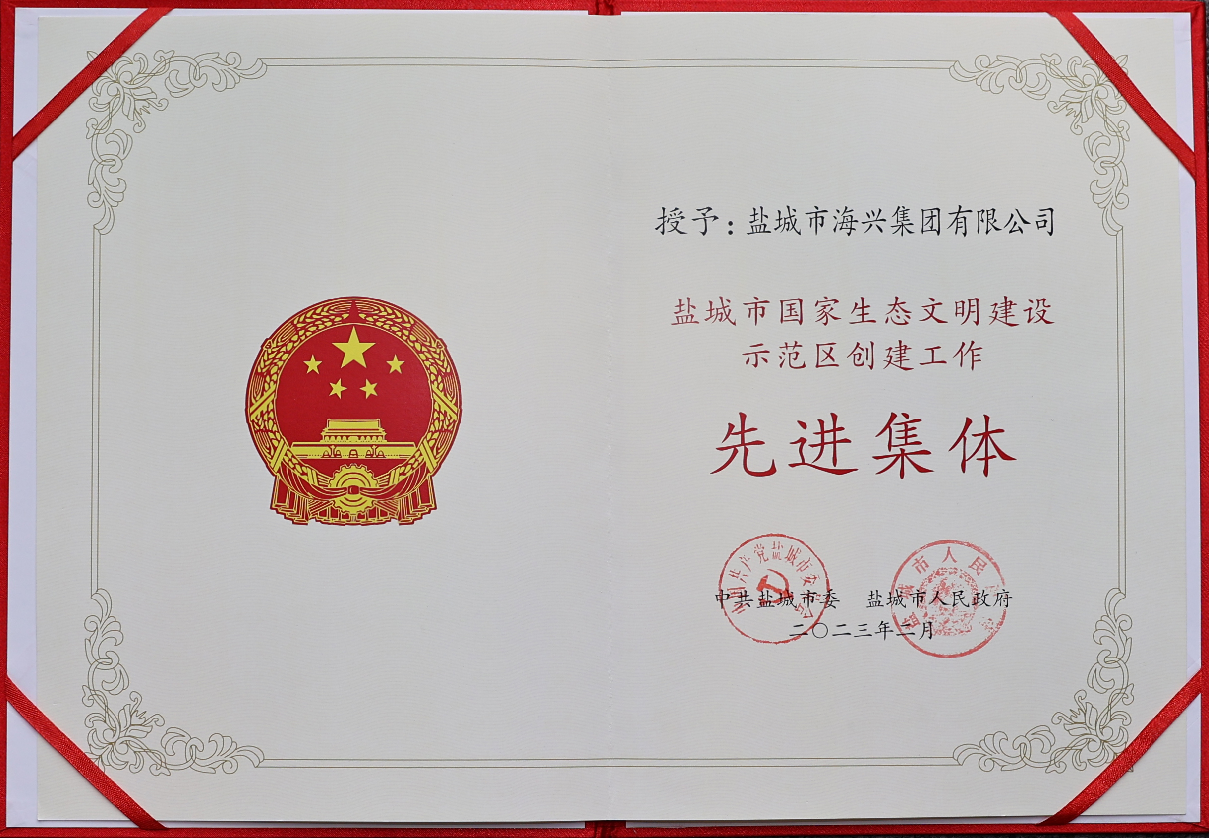 近日,市委、市政府表彰了一批鹽城市國家生態(tài)文明建設(shè)示范區(qū)創(chuàng)建工作先進集體和先進個人。其中,海興集團榮獲“鹽城市國家生態(tài)文明建設(shè)示范區(qū)創(chuàng)建工作先進集體”榮譽稱號。2023-04-04 -