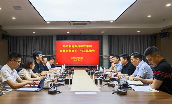 7月17日下午,蘇州城投集團黨委書記、董事長盛夢龍一行到集團考察,集團黨委書記、董事長董毅熱情接待。2024-07-17