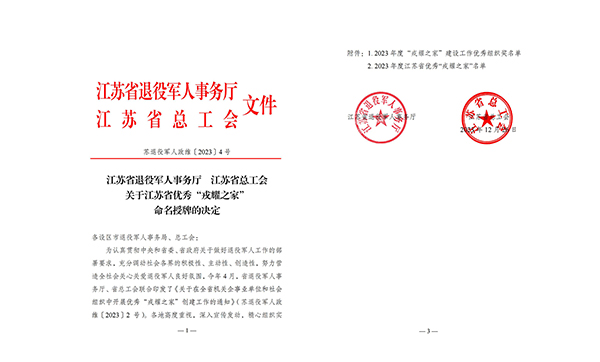 喜報(bào)!灌東鹽場(chǎng)獲評(píng)2023年度江蘇省優(yōu)秀“戎耀之家”稱(chēng)號(hào)