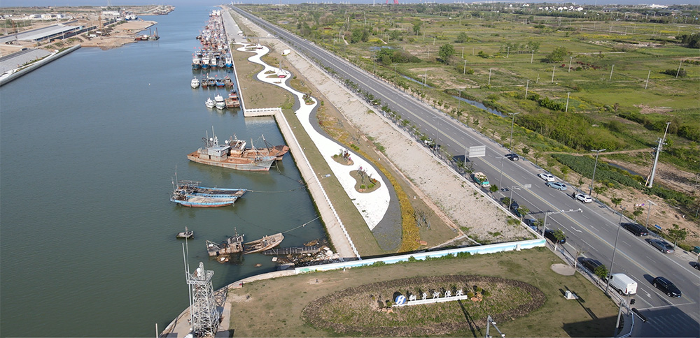 翻身河漁港升級(jí)改造項(xiàng)目按照國(guó)家一級(jí)漁港標(biāo)準(zhǔn)規(guī)劃建設(shè),改造后的陸域面積達(dá)88萬(wàn)平方米,水域面積達(dá)30萬(wàn)平方米,最寬處達(dá)220米。水工部分設(shè)有1942米海堤、1345米護(hù)岸、2210米碼頭泊位。其中北側(cè)護(hù)岸779米,碼頭泊位1242米,南側(cè)護(hù)岸566米,碼頭泊位968米,共設(shè)置泊位66個(gè),南北兩側(cè)各33個(gè),合計(jì)可并排應(yīng)急??考s1000艘270馬力的漁船。南岸碼頭為休息待泊泊位,北岸為生產(chǎn)性泊位,具有卸魚(yú)、加油、加冰、加水等功能,總投資約3.4億元(不含征地拆遷費(fèi)用)。