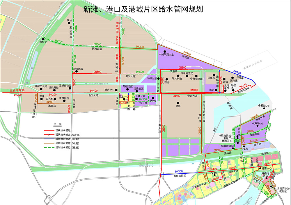 給水管道方面,已建成DN100以上管道100公里;規(guī)劃分期新建給水管道50.43公里,總投資約7727.5萬(wàn)元。其中近期建設(shè)3.98公里,總投資約389.5萬(wàn)元,覆蓋濱海港區(qū)通用碼頭、港城片區(qū)等區(qū)域;中期建設(shè)25.85公里,總投資約4124萬(wàn)元,覆蓋綜合能源站、冷鏈物流產(chǎn)業(yè)園等區(qū)域;遠(yuǎn)期建設(shè)20.6公里,總投資約3214萬(wàn)元,確保新灘、港口、港城片區(qū)管網(wǎng)呈環(huán)狀布置,全面提升黃海新區(qū)供水可靠性。