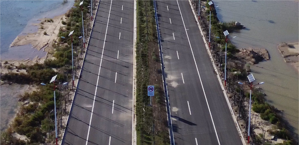 濱響大道規(guī)劃為黃海新區(qū)橫向主干道路,該項(xiàng)目分東、中、西三段實(shí)施,東起濱海港海堤,西至陳家港大道,道路全長45.5公里,規(guī)劃道路紅線寬60米,雙向六車道設(shè)計(jì),設(shè)計(jì)速度60公里/小時,總投資約為35億元。作為黃海新區(qū)集疏運(yùn)體系重要組成部分,濱響大道是策應(yīng)市委、市政府“兩港兩城”建設(shè)、貫通濱海港區(qū)和響水港區(qū)的重要交通樞紐工程。該項(xiàng)目建成后將進(jìn)一步完善新區(qū)路網(wǎng),有效提升產(chǎn)業(yè)空間布局,增強(qiáng)新區(qū)項(xiàng)目承載能力。
